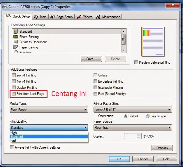 - Sedangkan untuk printer Canon cari dan centang Print from Last Page atau Cetak dari Halaman Terakhir. Jika sudah klik OK.