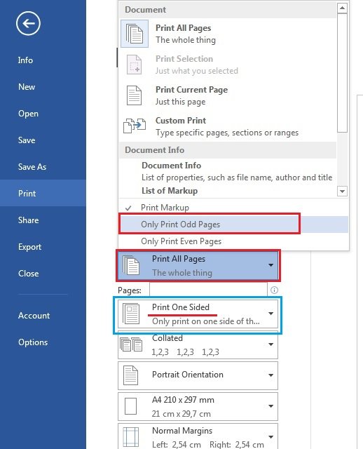 - Selanjutnya di bagian Settings, ubah Print All Pages menjadi Only Print Odd Pages. Tujuannya untuk mencetak halaman bagian ganjil seperti halaman 1, 3, 5, 7, dst.