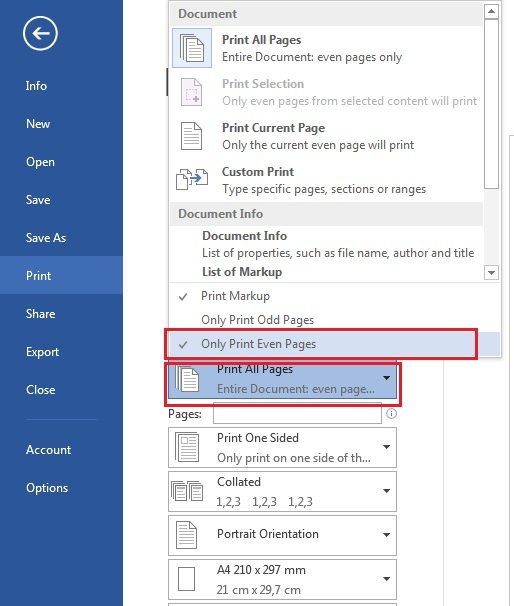 5. Setelah selesai di print, selanjutnya yaitu lakukan langkah 1 dan 2 kembali lalu ubah pada langkah 2 dari Only Print Odd Pages menjadi Only Print Even Pages. Perlu di ingat kembali balik kertas dan pasang kembali ke print. Jangan sampai salah posisi meletakan kertas yang akan di print.