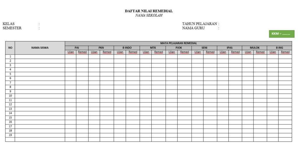 Setelah selesai ujian sekolah sebagian siswa biasanya dihadapkan dengan remedial atau perbaikan nilai. Remedial ini hanya diperuntukan oleh siswa yang nilainya kurang atau di bawah KKM. Untuk memperbaiki nilai, setiap guru harus memiliki format nilai remedial sebagai acuan perbandingan dalam memperbaiki nilai dibawah KKM. Ada berbagai banyak cara untuk memperbaiki nilai yang kurang di bawah KKM, disini kita akan bahas beberapa cara agar siswa tidak remedial lagi beserta format nilai remidialnya.
