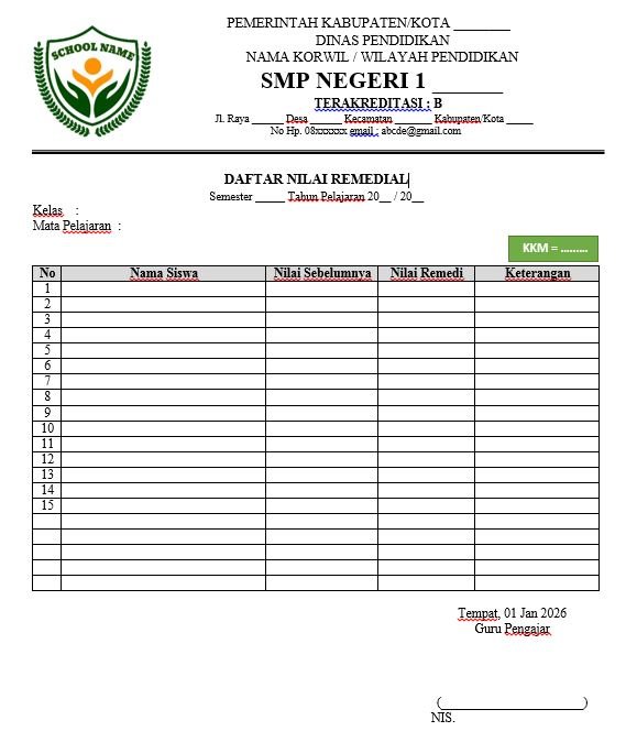 - Nama File : DAFTAR NILAI REMEDIAL PerMapel