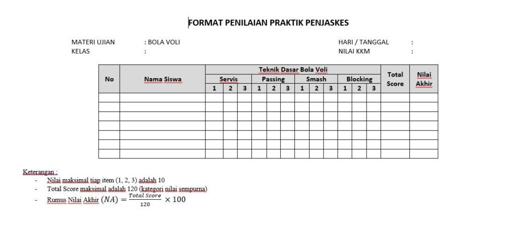- Nama File : FORMAT PENILAIAN PRAKTIK PENJASKES